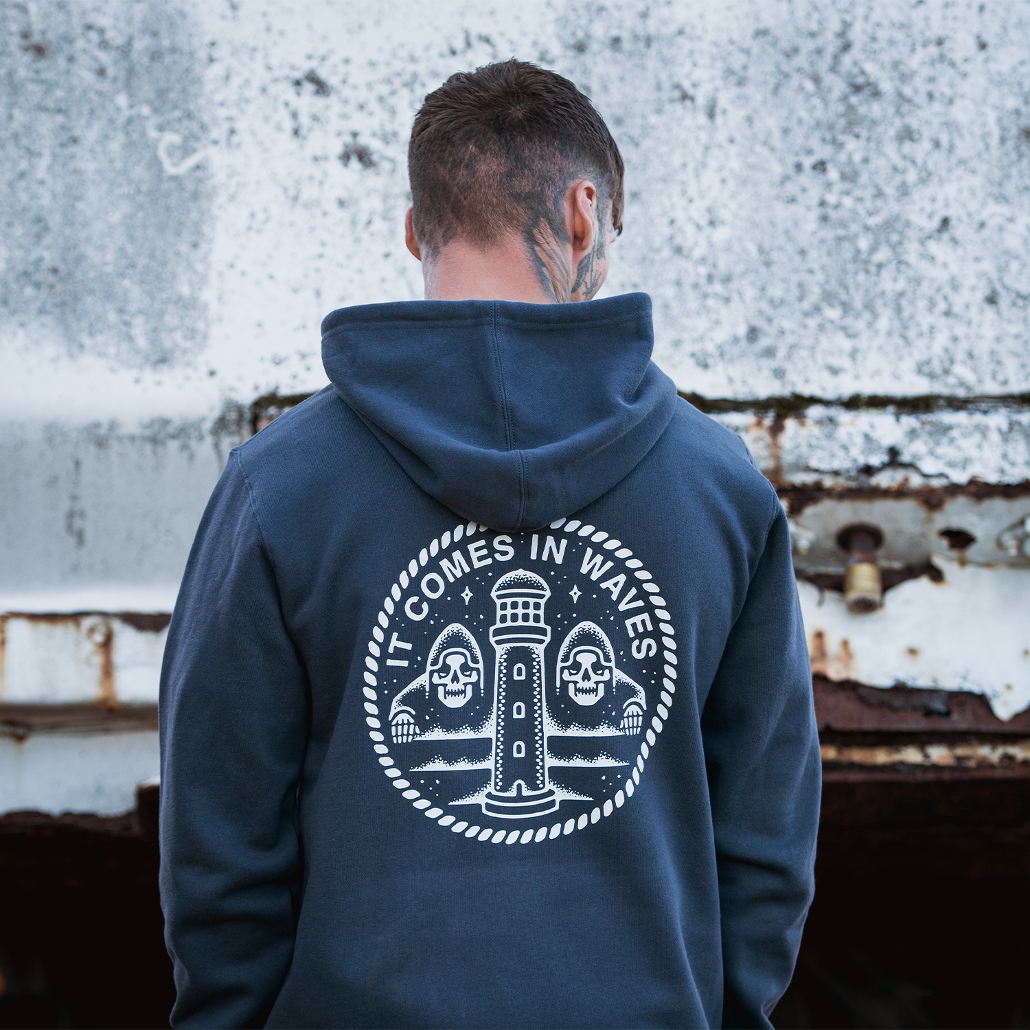 IT COMES IN WAVES FRONT & BACK PETROL T-SHIRT