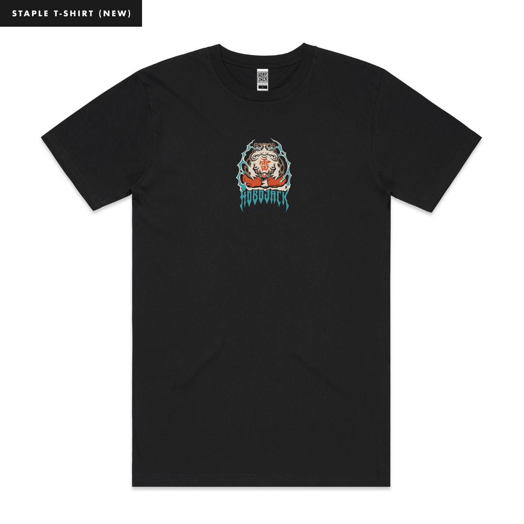 TIGER INFERNO - FRONT & BACK - BLACK T-SHIRT - DELUXE HEAVY